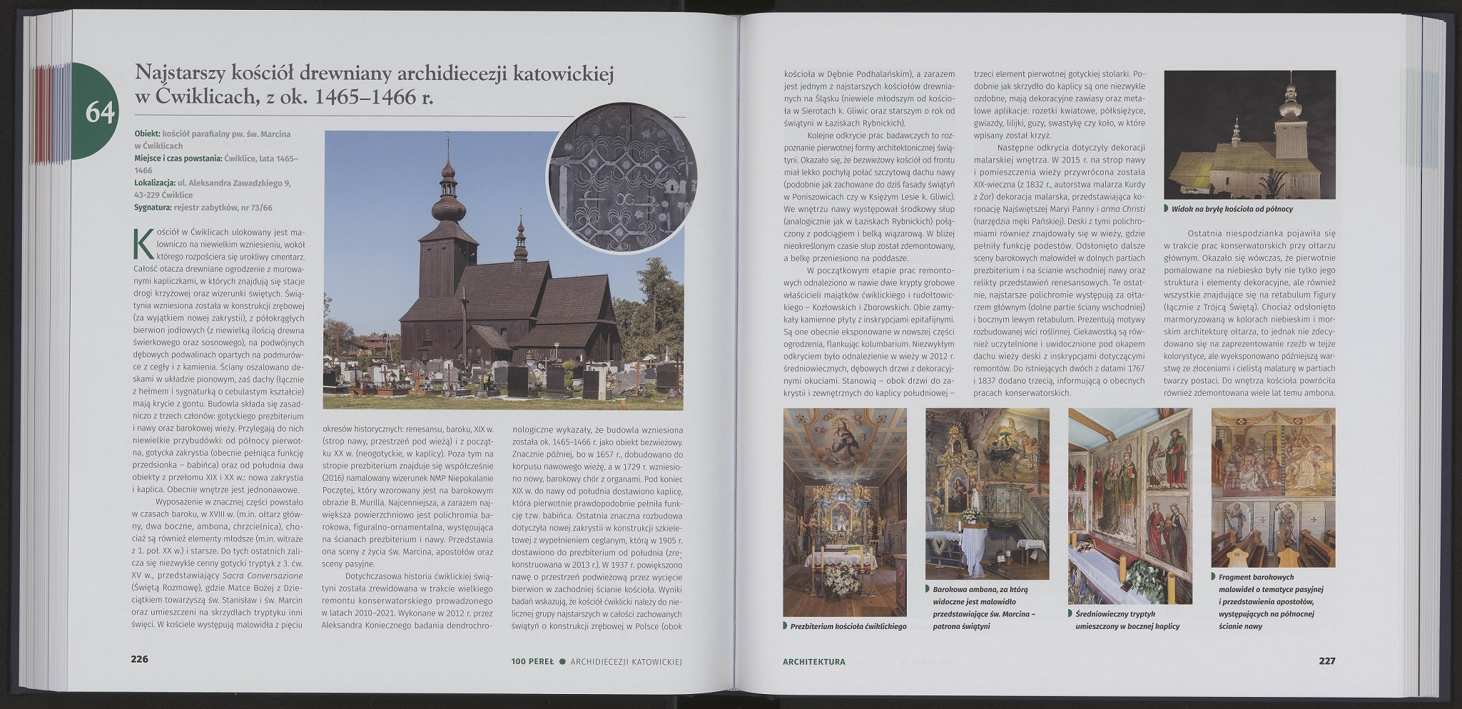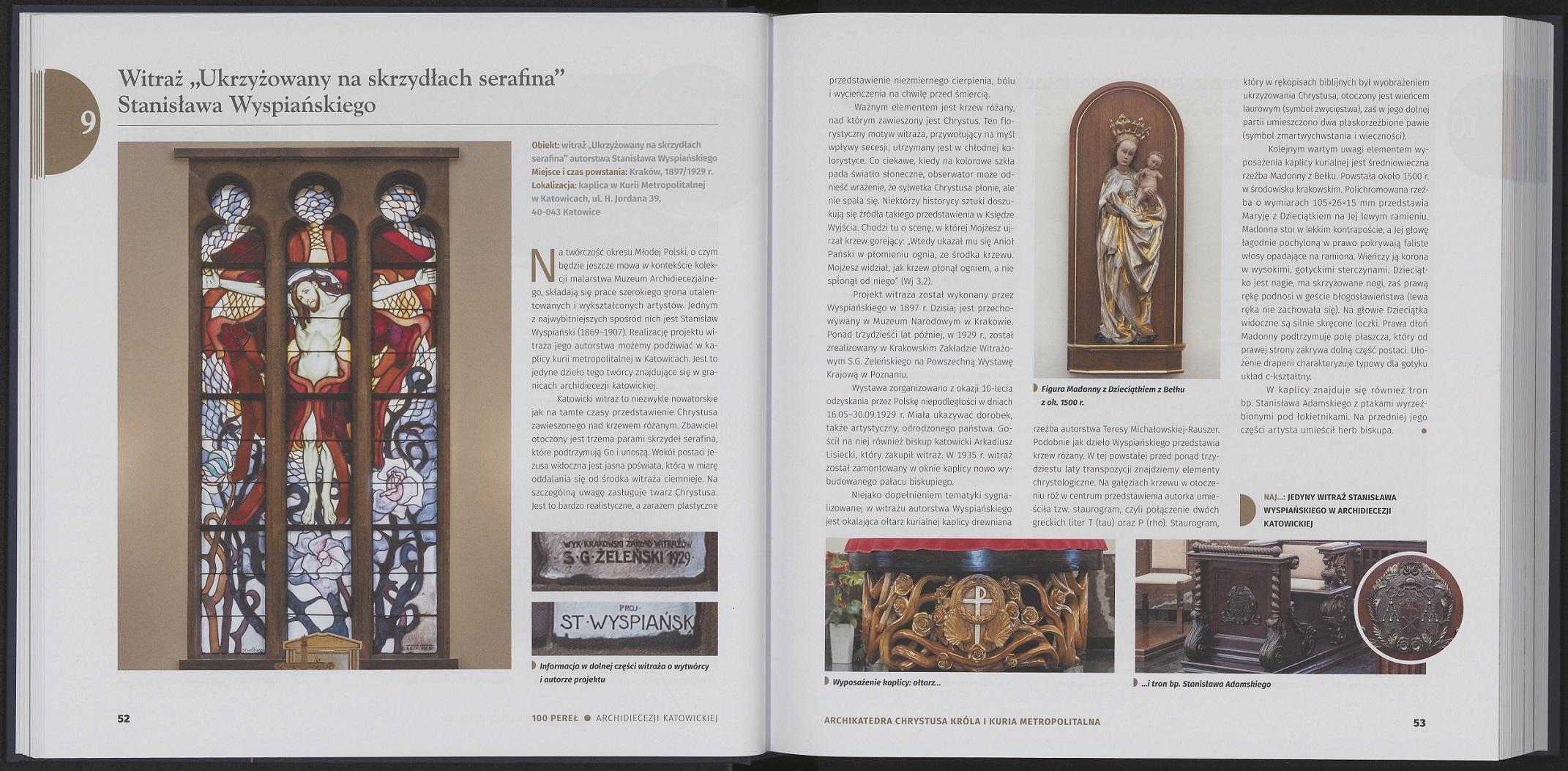 Książka prezentująca 100 pereł na 100-lecie Archidiecezji katowickiej jest formą uczczenia 100. rocznicy powołania do życia diecezji katowickiej. Przedstawione w publikacji materiały pozwalają zagłębić się czytelnikowi w historię Górnośląskiego Śląska, poznać jego bogactwo, duchowość oraz religijność.