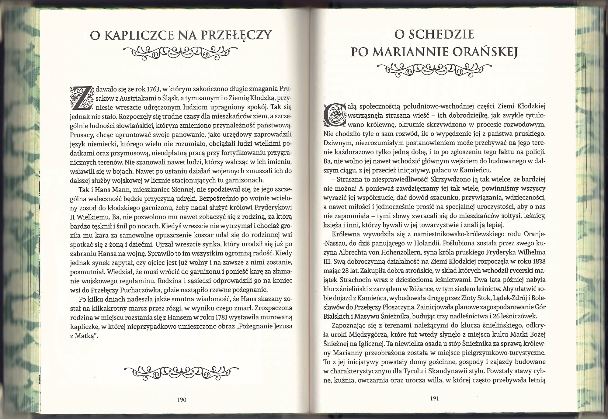 Przygotujcie się na wyjątkową podróż w świat tajemnic i magii! "Legendy ..." to publikacja, która przeniesie Was w czasy niezwykłych opowieści, barwnych postaci i przedziwnych wydarzeń. Stylizowana na starodruk z okuciami – ta piękna książka to nie tylko fascynująca lektura, ale i prawdziwa ozdoba każdej biblioteki. Po raz pierwszy w naszych wydawnictwach pojawi się zadrukowany brzeg bloku książki. Na zadruku znajdziecie symbol Ziemi Kłodzkiej.
