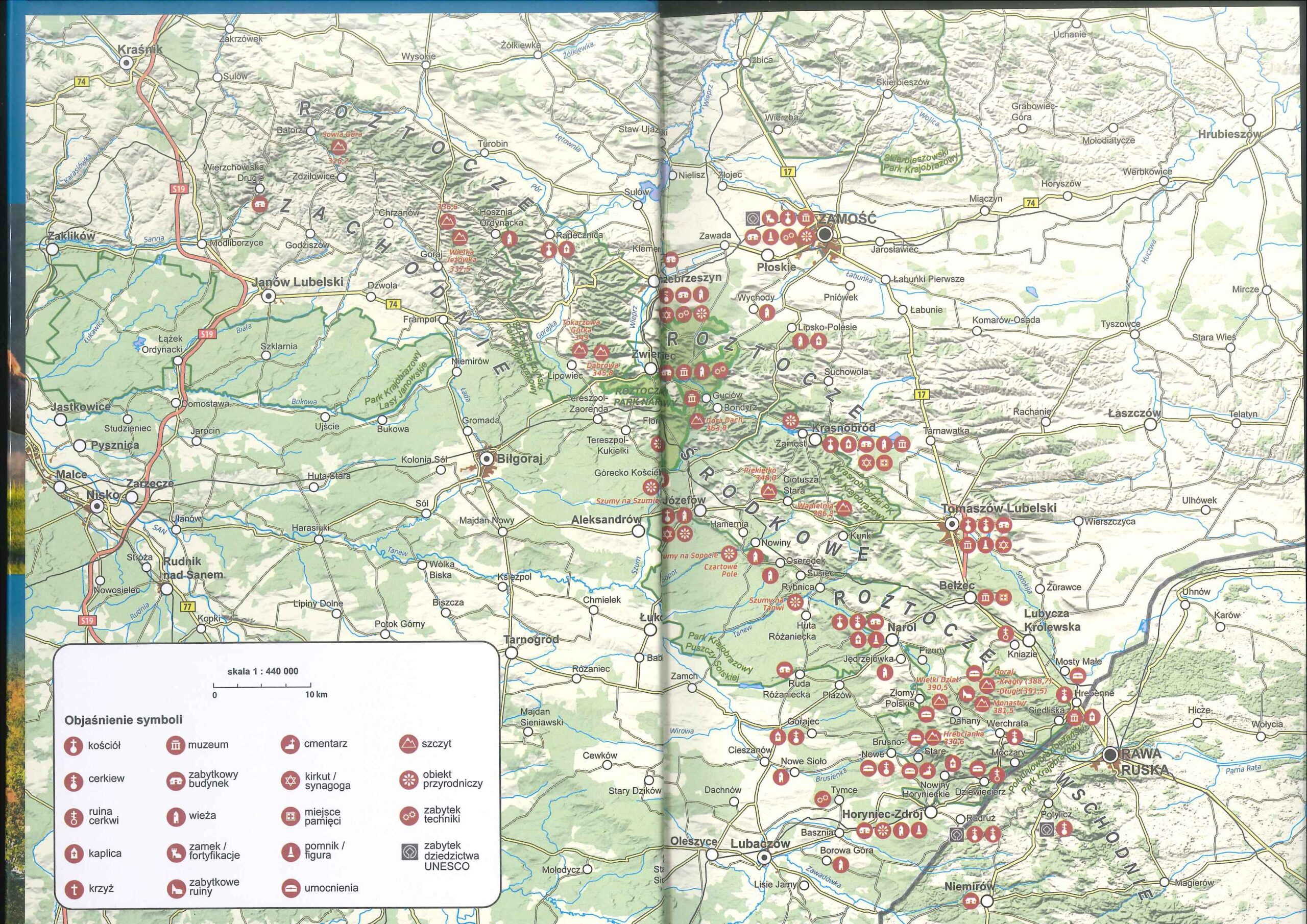 „Roztocze – do niedawna dla wielu nieznane lub kojarzone z «krańcem cywilizowanego świata» gdzieś na wschodnich rubieżach, dziś zyskuje coraz większą popularność. Trudno nakreślić sztywne ramy tego zakątka pełnego pamiątek po dawnej mozaice kultur, wyznań i języków, bo jego granice turystyczne wędrują na północ pod Zamość i na południe do Lubaczowa, zachodnią flanką ocierając się o Kraśnik. Sama nazwa wskazuje na roztaczające się niegdyś z tutejszych pagórów widoki oraz wody płynące wartkim nurtem rzek: Tanwi, Wieprza, Raty, Sołokii czy Sopotu. Progi skalne w korytach części z nich stanowią strefę krawędziową platform tektonicznych Europy, ukształtowaną przez naturę przed milionami lat.