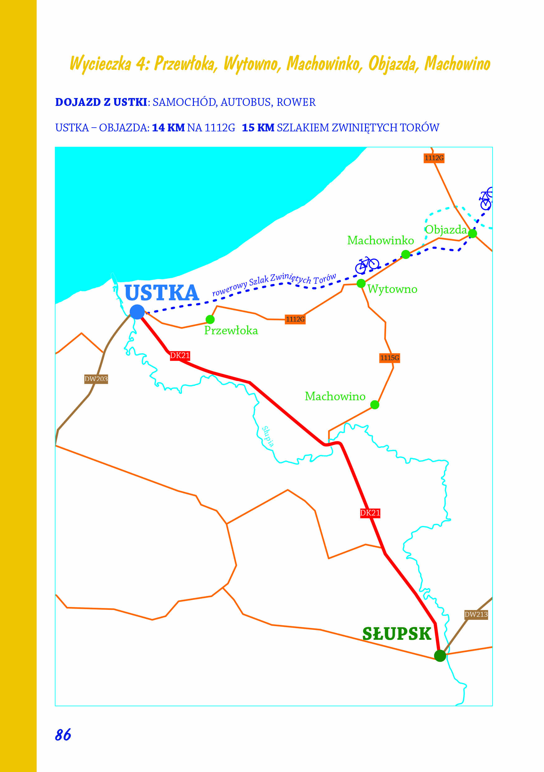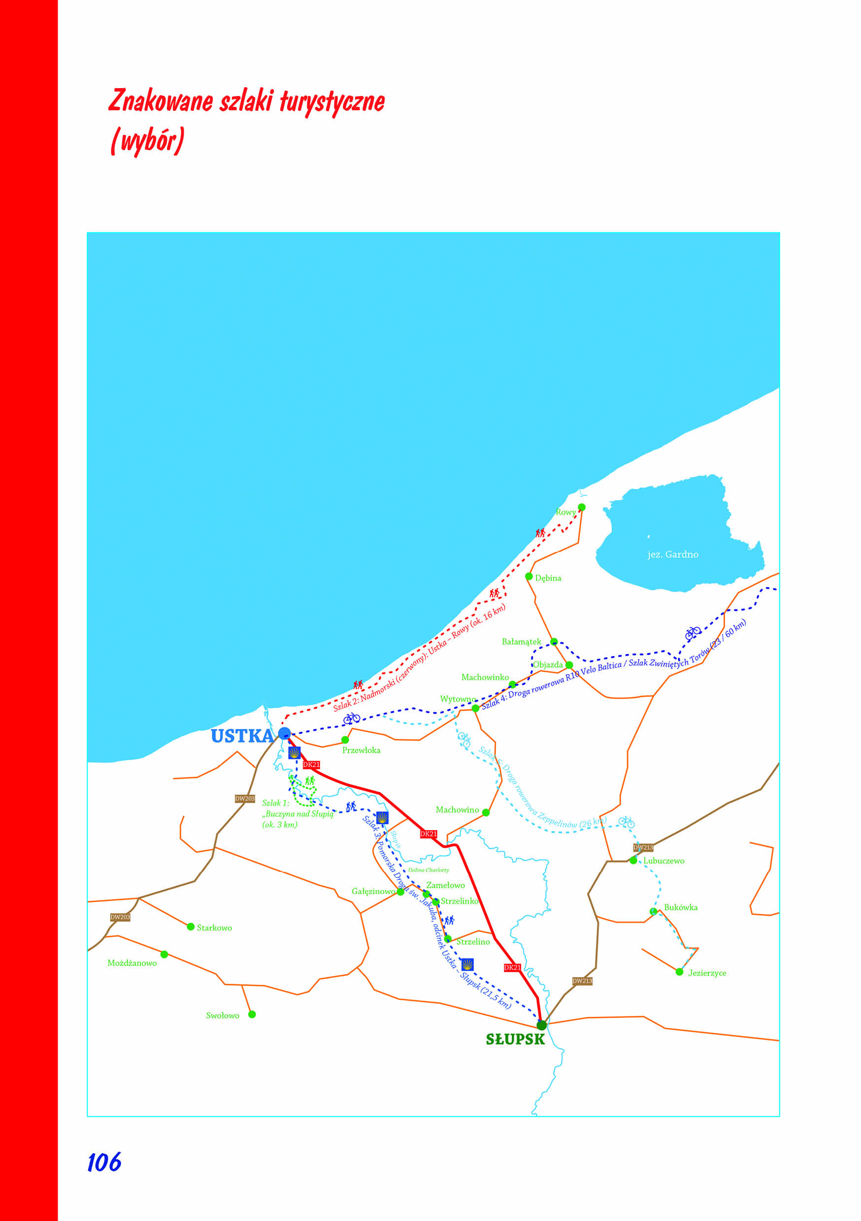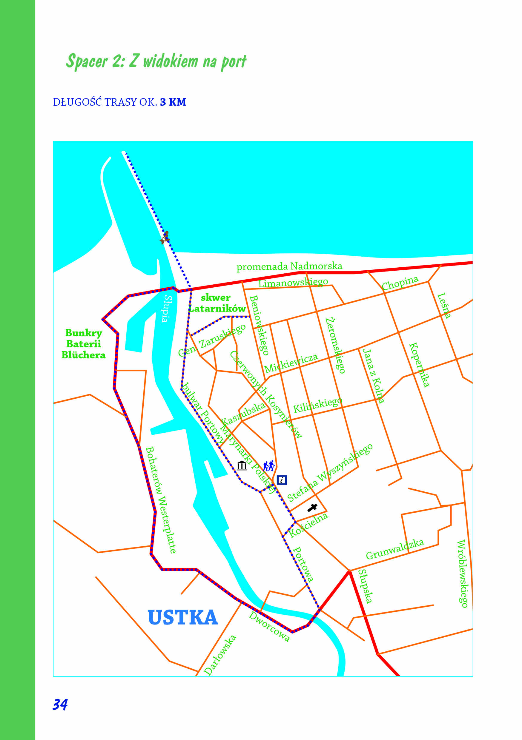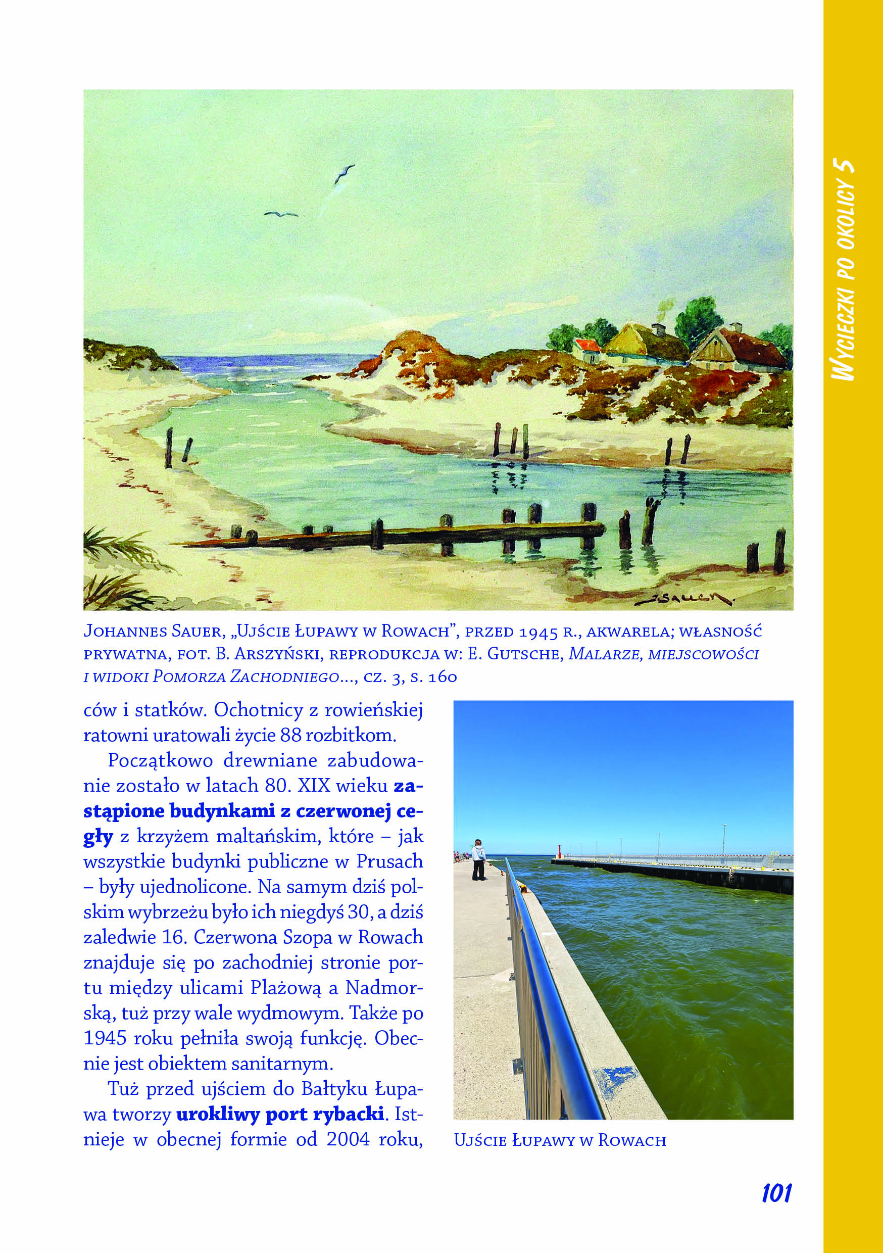 Każda z trzech głównych – spacery po Ustce, wycieczki po okolicy, szlaki turystyczne – jest oznaczona osobnym kolorem, zaopatrzona w plany i mapki, a tekst wzbogacony o liczne zdjęcia oraz inne ilustracje, pomagające poznać zmiany, jakie zaszły na opisywanym terenie w ciągu ostatnich 100 lat.