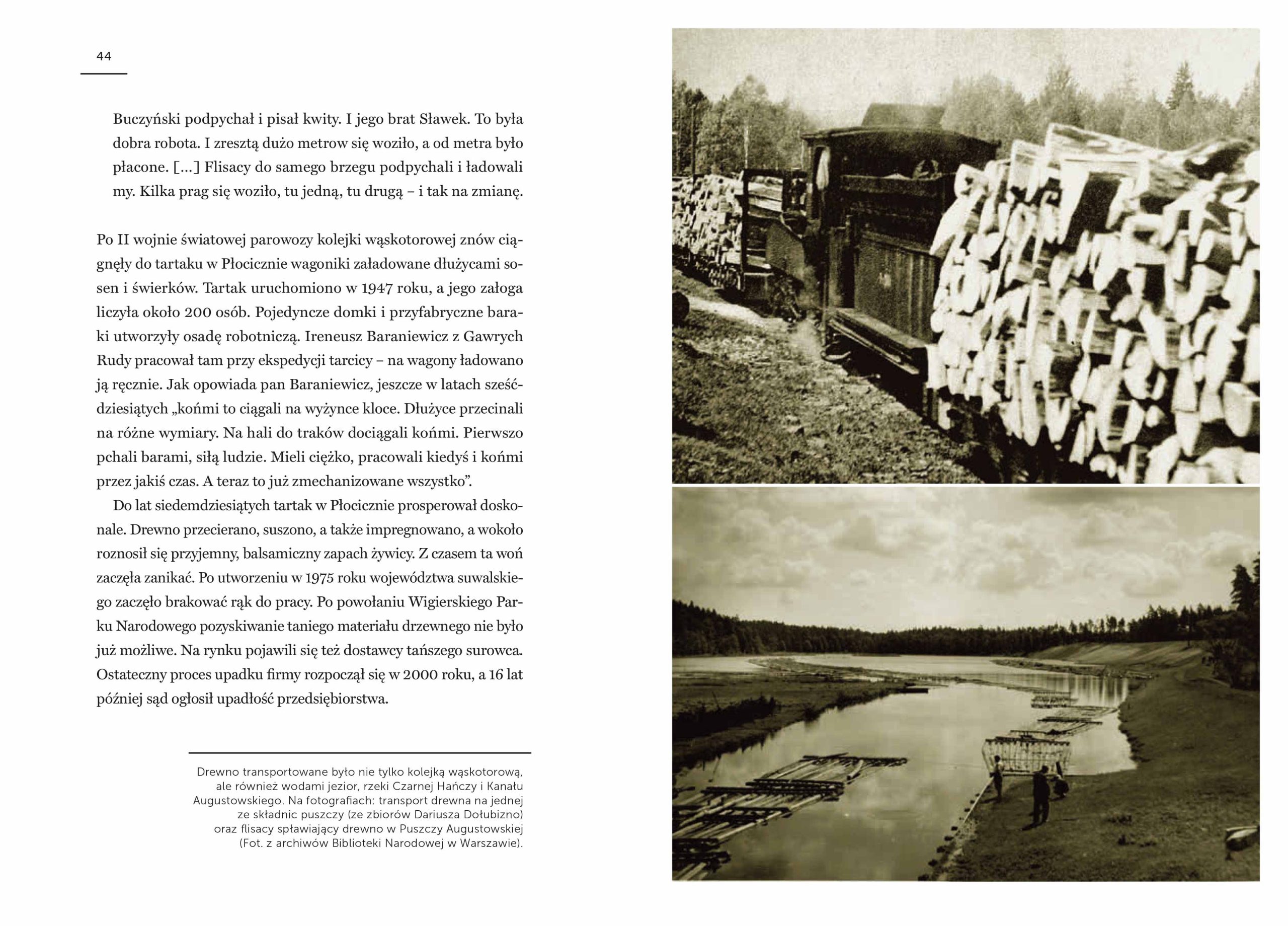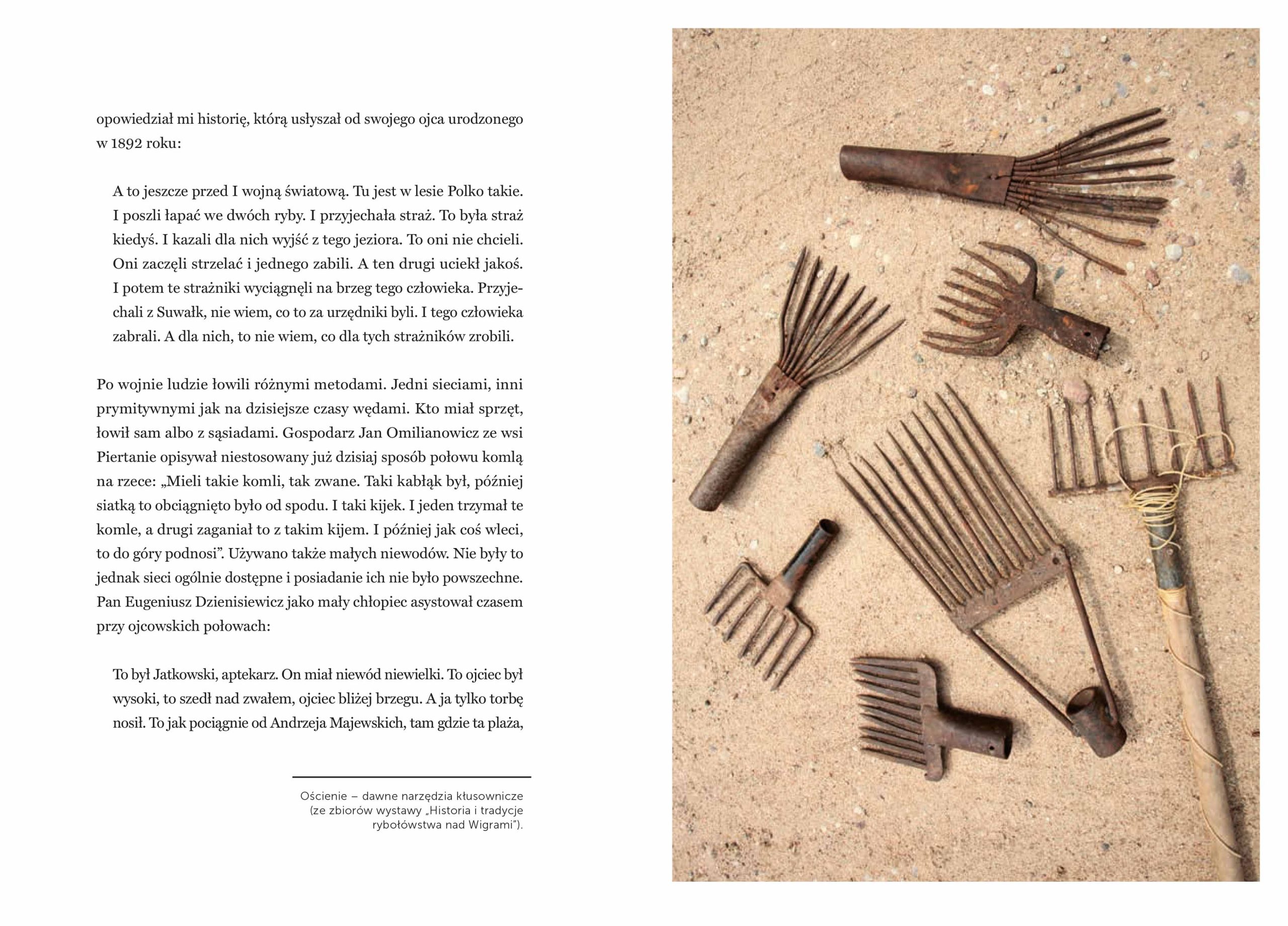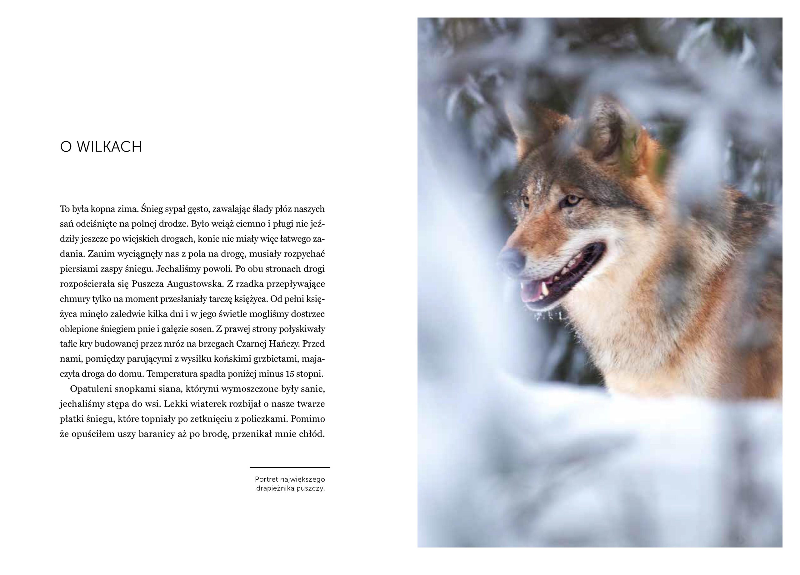 Człowiek i przyroda – tak w skrócie można nazwać opowieści Wojciecha Misiukiewicza. Drwale i rybacy, wilki, orły, bobry i jelenie to mieszkańcy malowniczej, utkanej jeziorami i rzekami leśnej krainy i bohaterowie książki. Bo historia tego zakątka kraju to nie tylko tęskne wycie wilków, gromki ryk jeleni, czy łopot orlich skrzydeł ponad Wigrami. To także plusk wioseł zanurzanych w wodach jeziora, pchanych spracowaną ręką rybaka, odgłos ręcznie ciągnionych pił i łoskot kół kolejki wąskotorowej. Autor opisuje nierozerwalnie ze sobą splecione losy ludzi i zwierząt, którym przyszło żyć wspólnie w tej surowej krainie, w świecie, który się zmienia i odchodzi.